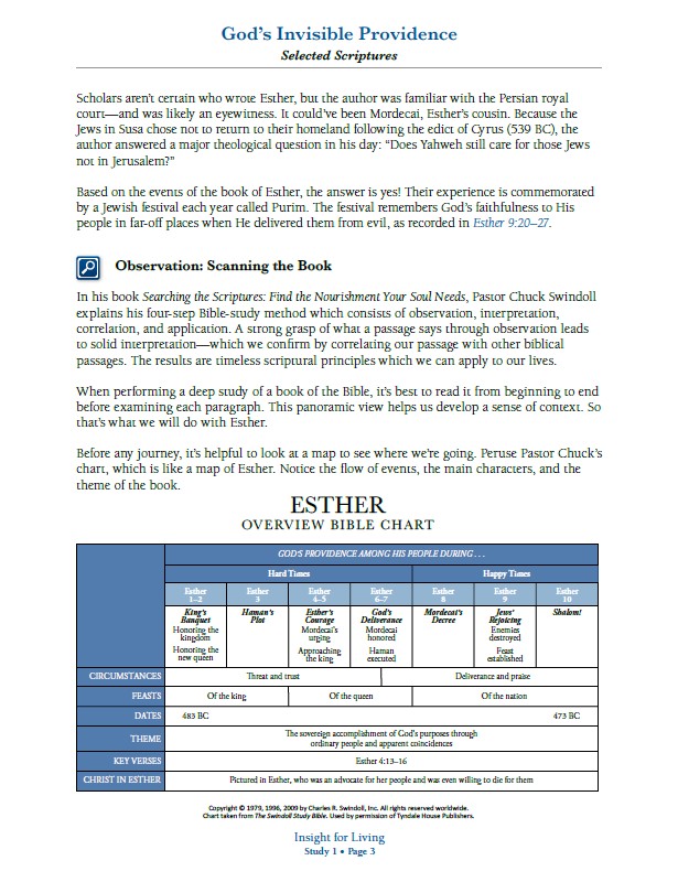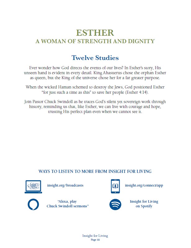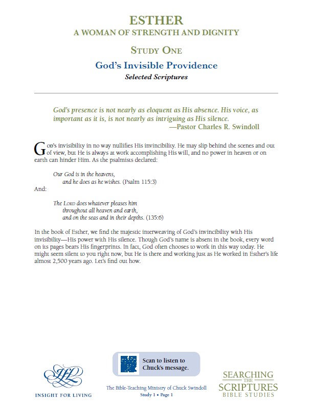 Join Pastor Chuck Swindoll as he traces God’s silent yet sovereign work through history, reminding us that, like Esther, we can live with courage and hope, trusting His perfect plan even when we cannot see it.