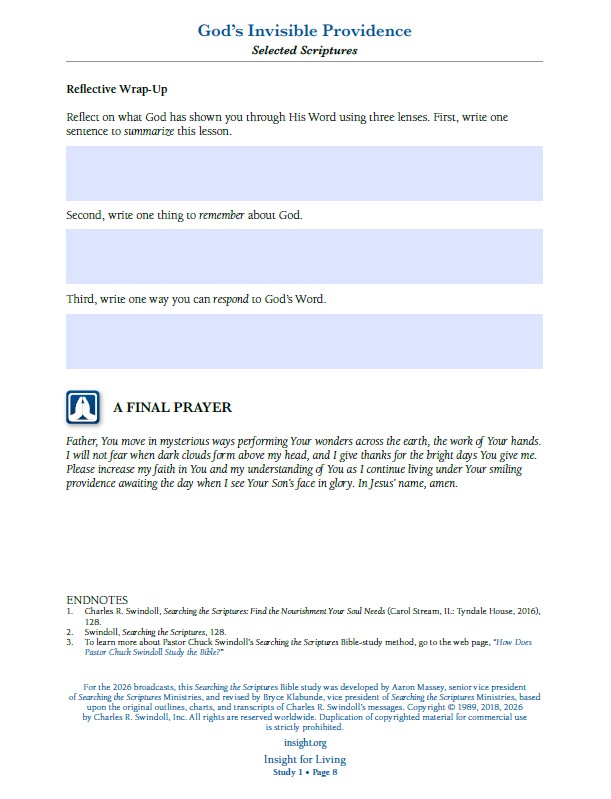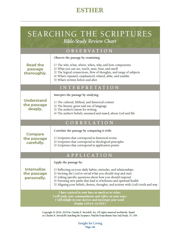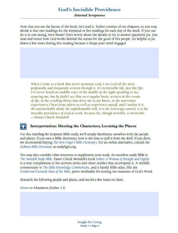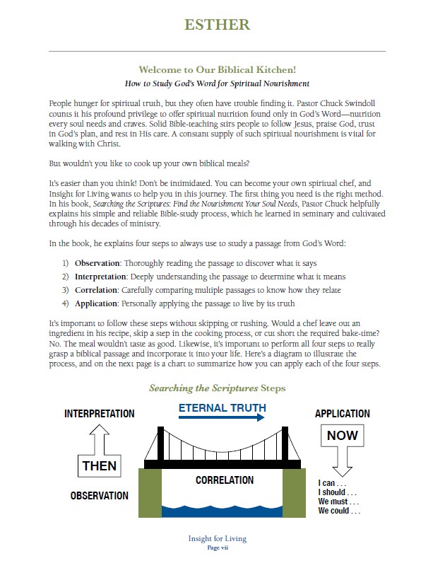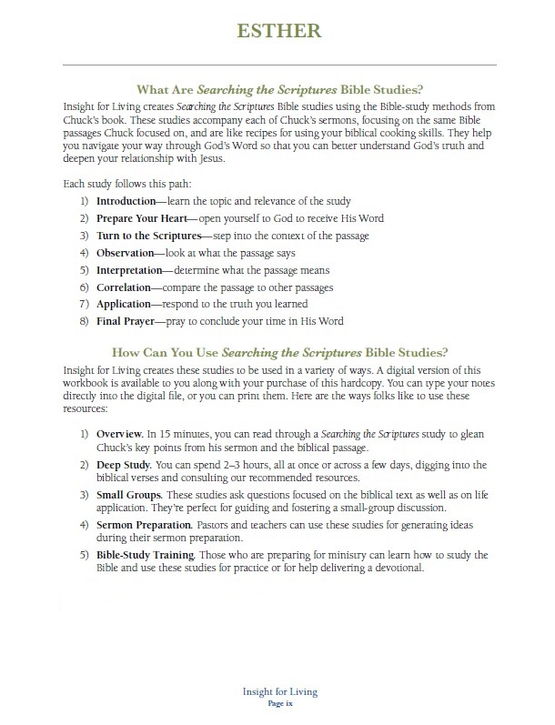 Insight for Living is excited to launch a new generation of freshly designed Searching the Scriptures Bible studies! These workbooks now offer an overview of Chuck’s Bible-study method and come in a printer-friendly format. Plus, you now have the option to order this preprinted set as a spiral-bound workbook.