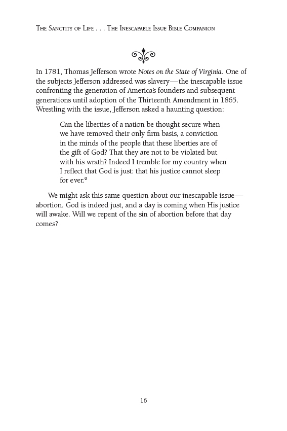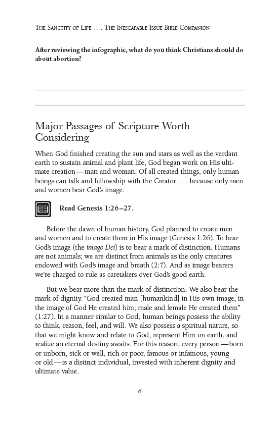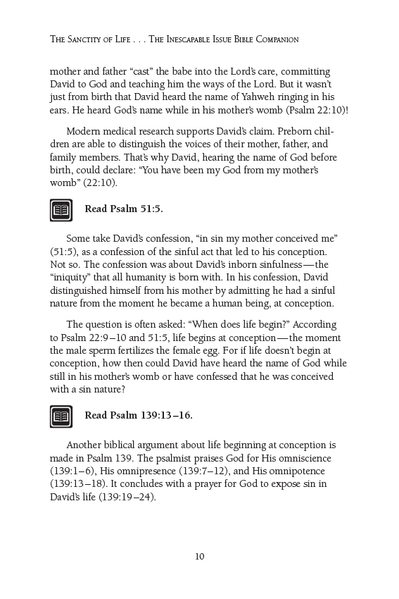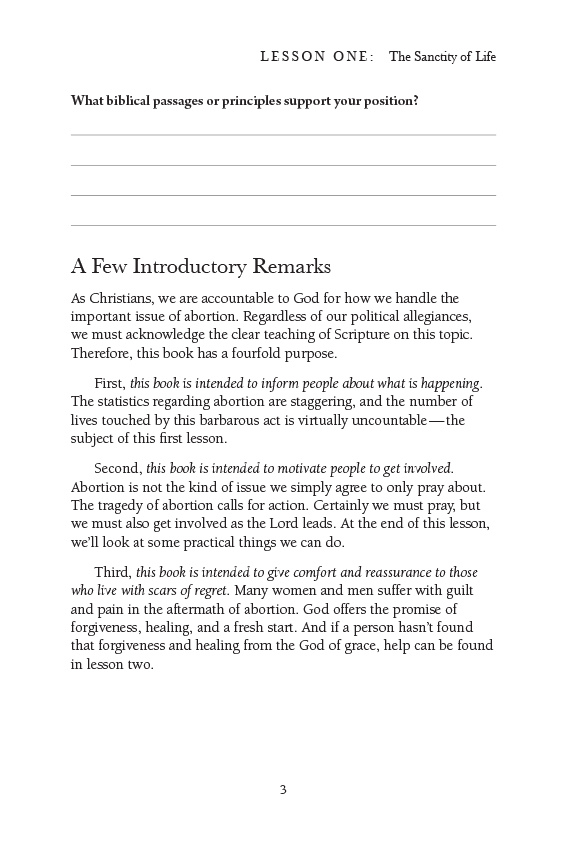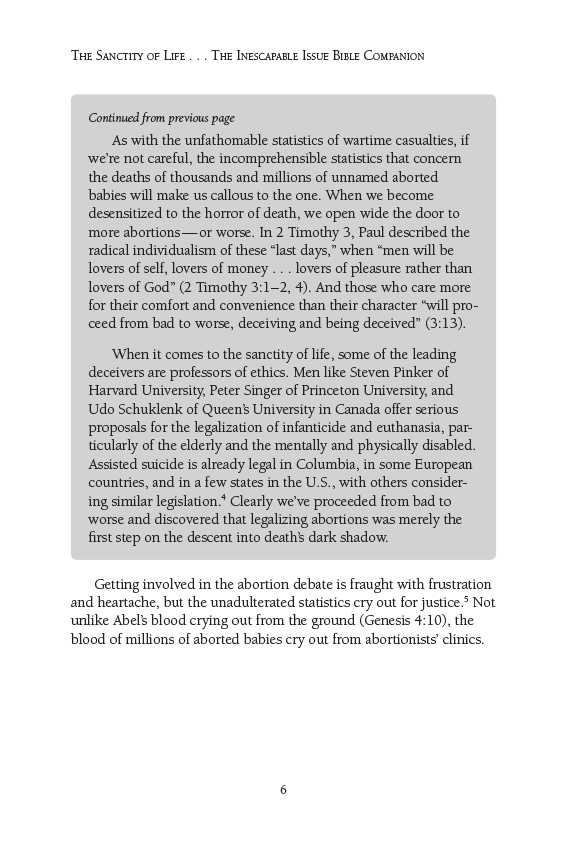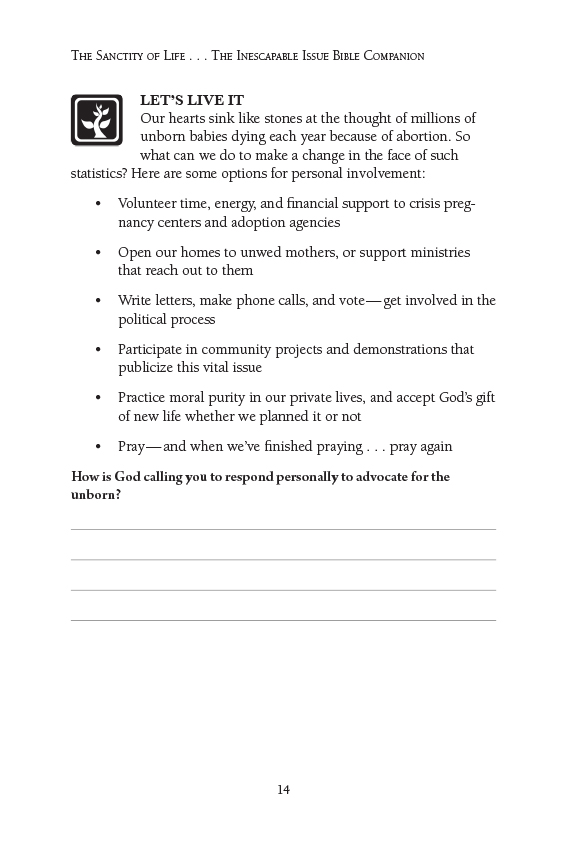 But God offers hope. The Sanctity of Life . . . The Inescapable Issue Bible Companion will help you think biblically about God’s precious gift of life and show you how you can stand strong. With thoughtful care to the application of biblical principles, this book will help you find forgiveness and healing. It will help you rediscover the abundance God wants for you.